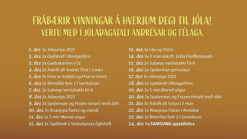 Vinningana má nálgast hjá Eddu útgáfu, Hádegismóum 2-4, Reykjavík